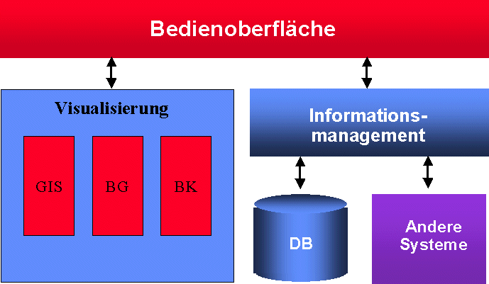 Das GIS (z.B. ArcView oder topologic) stellt Funktionen und Werkzeuge